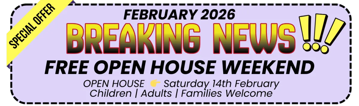 Choose from; 2 FREE Open House events on Saturday 10th & Saturday 24th January 2026 for kids, teens, adults, and families.